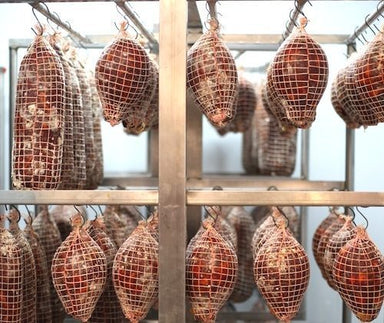 A unique salami made from big, hand cut pieces of loin, shoulder and ham mixed with chilli (the spice is warm rather than hot) and fennel seeds. Ha...