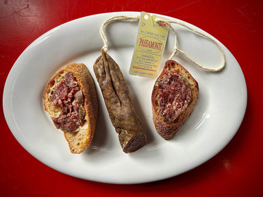 Fegatino, like the more well know ciauscolo, hails from Le Marche on Italy's east coast. Candido and Clotilde Passamonti make this long, thin salam...