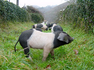 Pierre Oteiza keeps his black Cochon Basque pigs in the Pyrenees some 6kms from the border with Spain. Chorizo is very traditional in this - French...