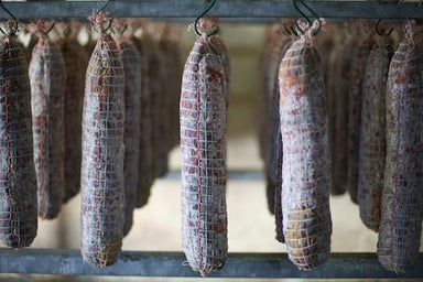 The Salsiccia is a lovely, looping sausage that is more coarsely ground than the soppressata. It is made with meat from the shoulder and aged for s...